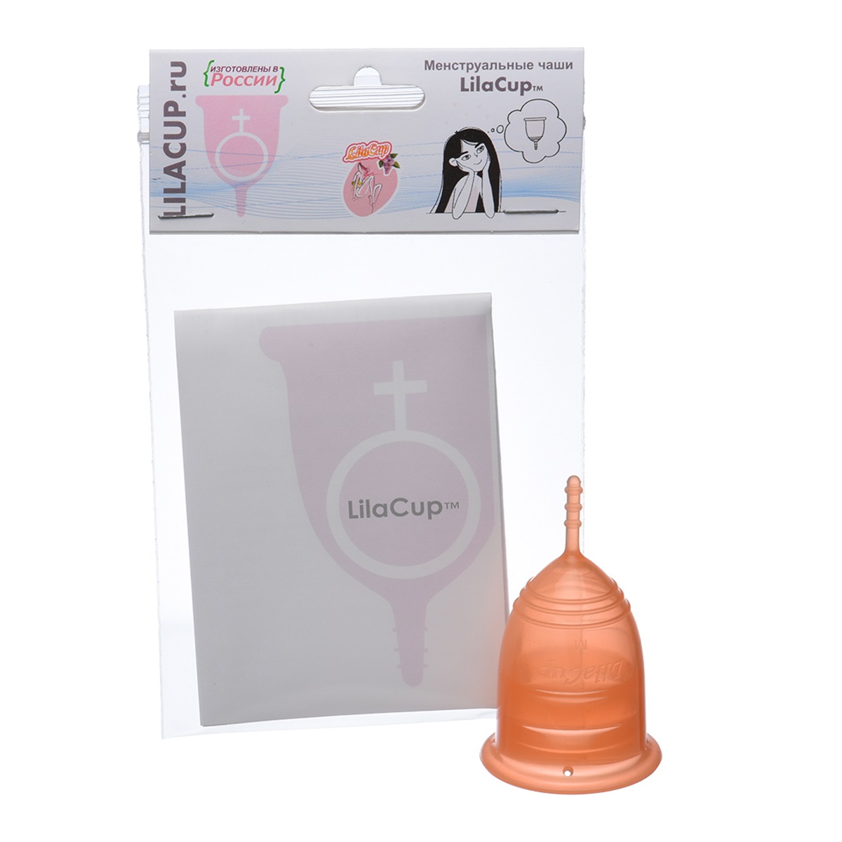 Размер M длина с хвостиком 72 мм, высота чаши 52 мм, диаметр 43 мм, объем 22 мл